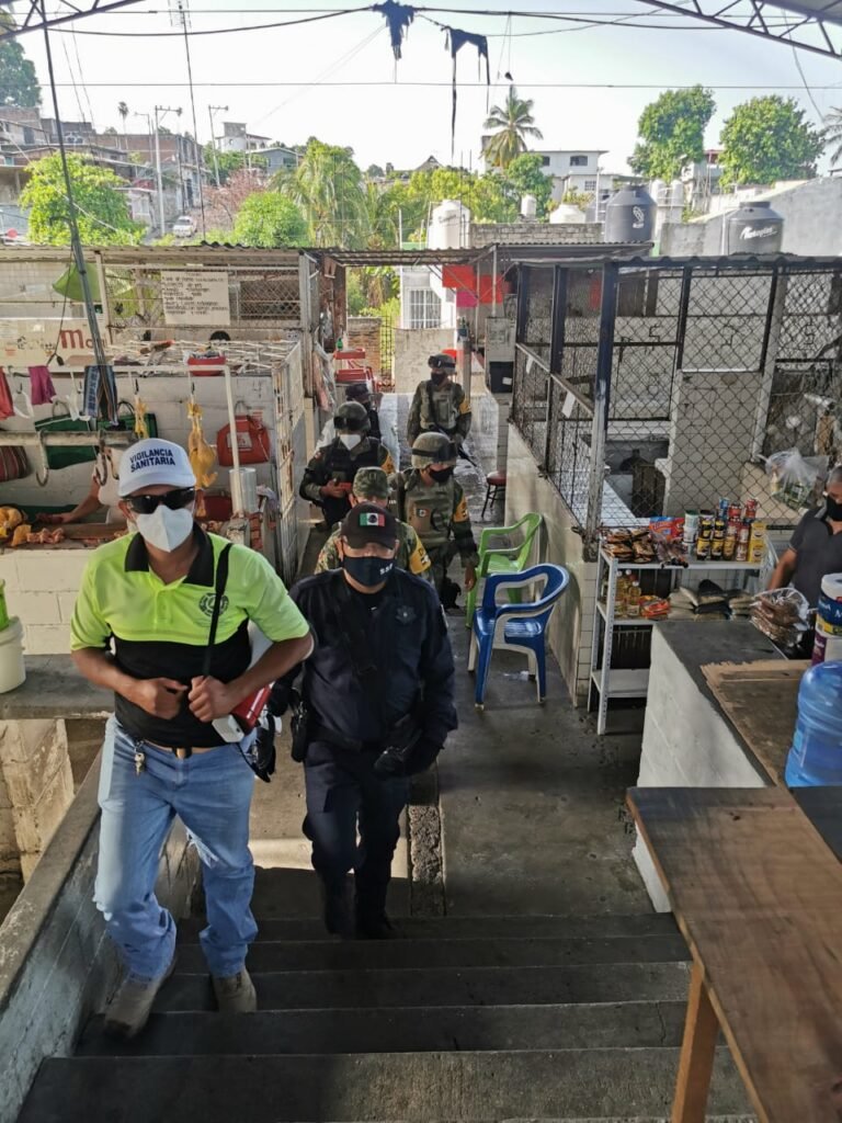 ACAPULCO. —Para prevenir contagios y posibles rebrotes comunitarios por el COVID-19, instancias de los tres órdenes de gobierno intensificaron operativos de concientización y supervisaron el cumplimiento de las medidas sanitarias en los diferentes centros de abasto popular del puerto.