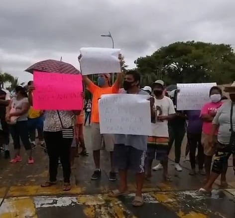En la protesta participaron vendedores ambulantes, restauranteros y concesionarios de servicios turísticos de diversas playas del puerto.