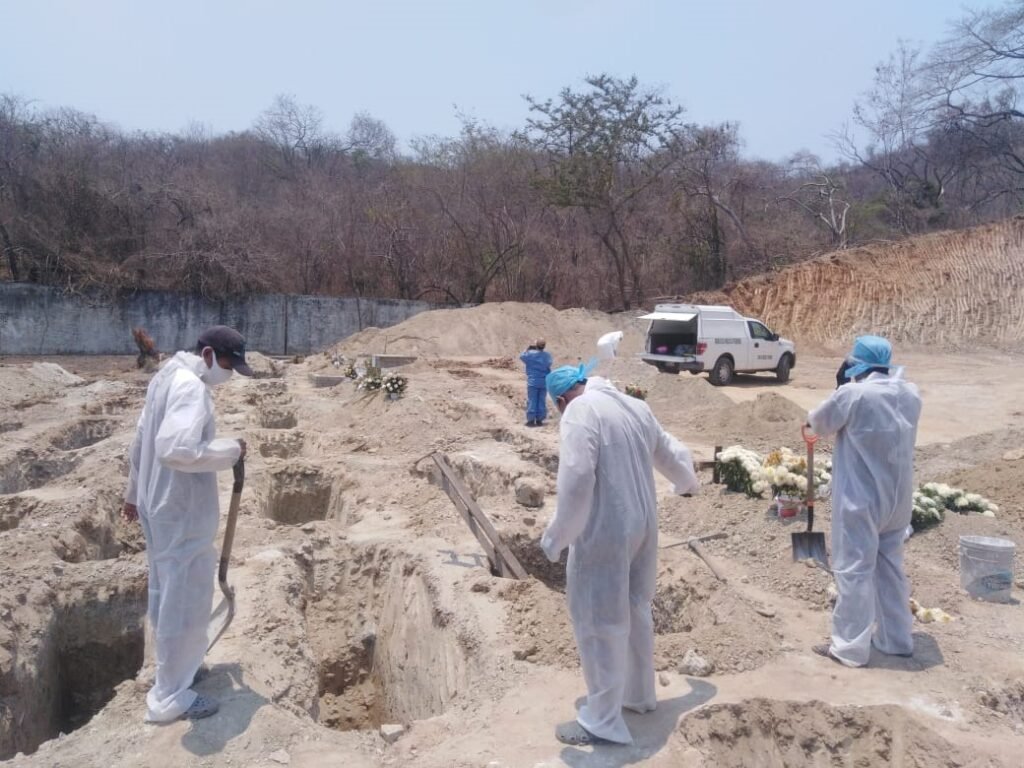 El 22 de mayo pasado, ante el incremento de contagios y por estar al límite de su capacidad los panteones y crematorios, el gobierno municipal anunció el inicio de excavación de 300 tumbas en El Palmar, ubicado en la entrada por vía terrestre al puerto.