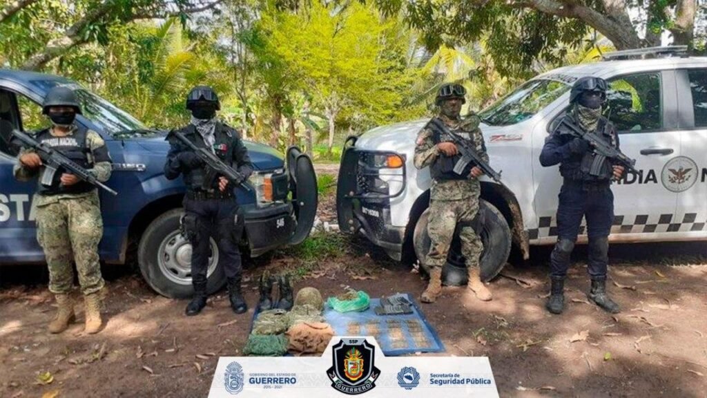 En julio, como resultado de acciones conjuntas, agentes de la Policía Estatal, Grupo “Jaguar” y Guardia Nacional detuvieron a cinco personas y aseguraron equipo táctico, armamento, cartuchos útiles, presunta droga, uniformes tipo militar y vehículos en los municipios de Zihuatanejo y La Unión, en la región Costa Grande.