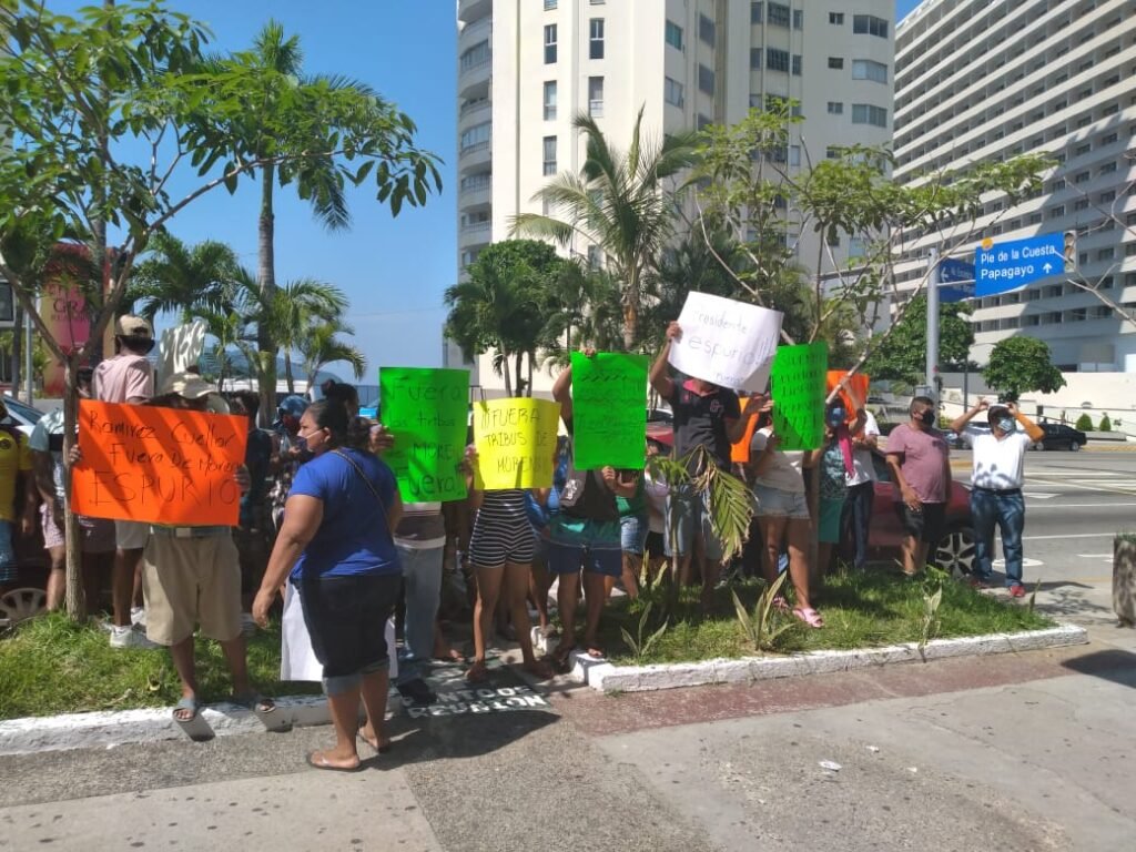 ACAPULCO.— Militantes del partido Movimiento de Regeneración Nacional (Morena) protestaron este domingo afuera de un restaurante donde se llevaba a cabo una reunión encabezada por el presidente nacional interino de ese partido, Alfonso Ramírez Cuéllar.