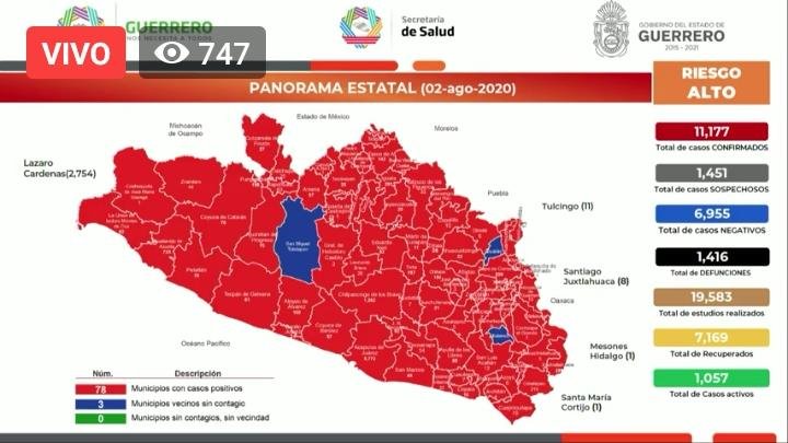 En su informe del mediodía, señaló que hasta ese momento había un registro de 11 mil 177 casos confirmados y mil 466 defunciones en Guerrero.