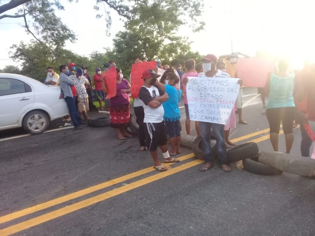 Alrededor de 50 campesinos de la población de Llano de Puerta, en el municipio de San Marcos, bloquearon la carretera federal en demanda de la entrega de fertilizante y despensas para las familias de ese lugar.