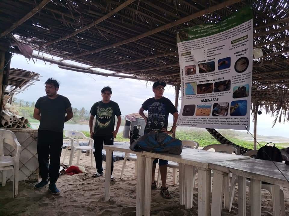 El presidente de Barreros de San Luis A. C., Manuel Hernández; el secretario Leopoldo Loeza y Bogar Enrique de la O Ortiz, tesorero de dicho comité, fueron los encargados de explicarles a los estudiantes todo de las actividades que llevan a cabo en este campamento para hacer la recolección, limpieza, cultivo y cuidado de las áreas de nidales donde eclosionarán las pequeñas tortuguitas.