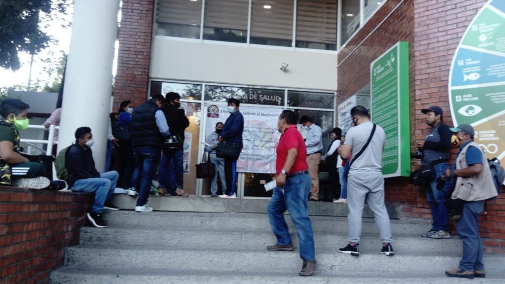 Los maestros disidentes arribaron a las oficinas centrales de la Secretaría de Salud del Estado, ubicada sobre la avenida Ruffo Figueroa, donde colocaron pancartas en la entrada principal e impidieron la salida y el ingreso de los trabajadores de esa dependencia.