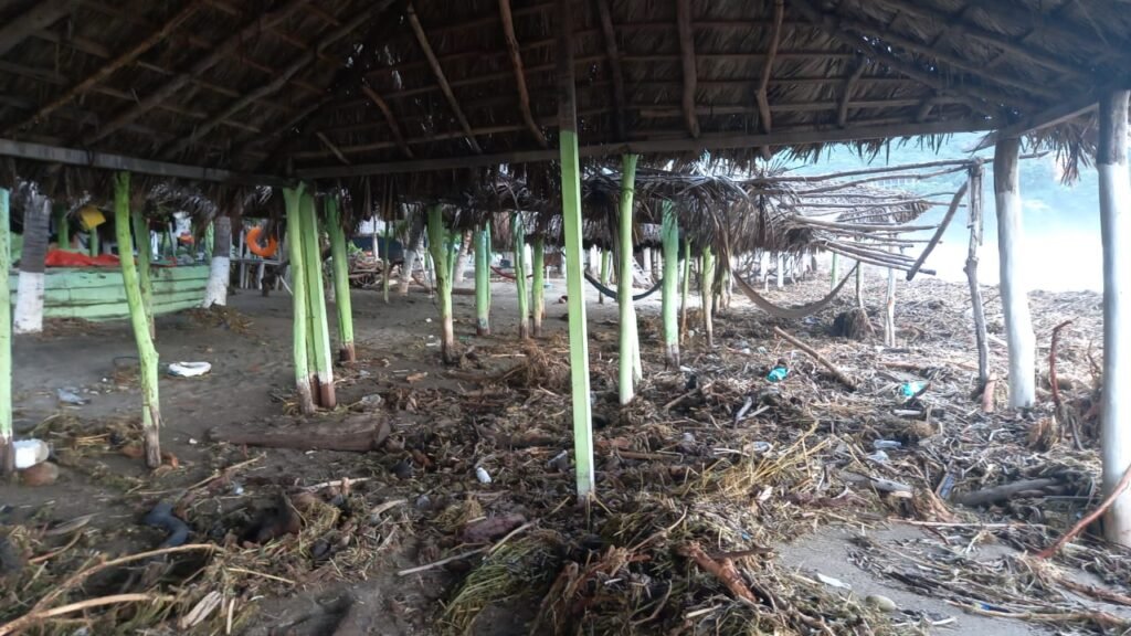 Mientras tanto los mismos prestadores de servicios turísticos son los que han iniciado con el retiro de las toneladas de escombros esparcidas a lo largo de varios kilómetros de la franja de playa.