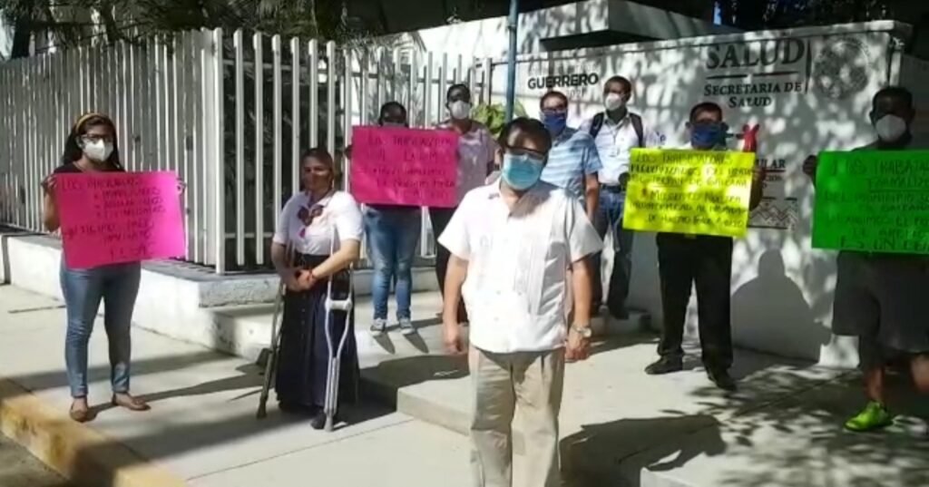 Empleados del hospital básico comunitario de Tecpan de Galeana realizaron este lunes una protesta frente a las instalaciones hospitalarias para exigir a las autoridades estatales y federales el pago de sus fondos para el ahorro.