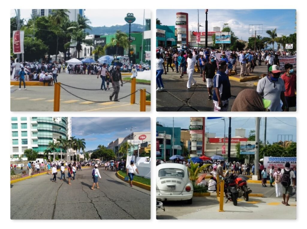 Prestadores de servicios turísticos de diferentes playas de Acapulco, bloquean este día totalmente la Costera Miguel Alemán, provocando caos en la ciudad.