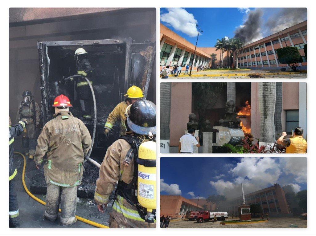 Al lugar arribaron pipas con agua de Protección Civil del estado y de Bomberos de Chilpancingo, quienes sofocaron el fuego en la camioneta, en la biblioteca y en varias oficinas administrativas.