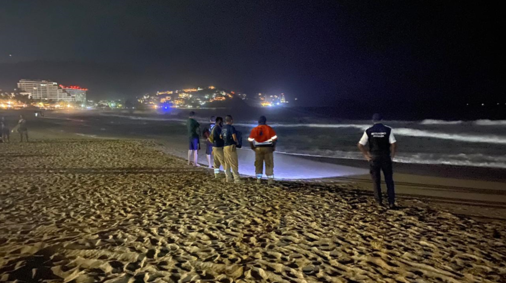 En seguida acudieron agentes de Protección Civil Municipal y Estatal, así como de la Dirección de Bomberos, para efectuar una búsqueda, con lámparas alumbraban las olas en el área donde Ulises desapareció.
