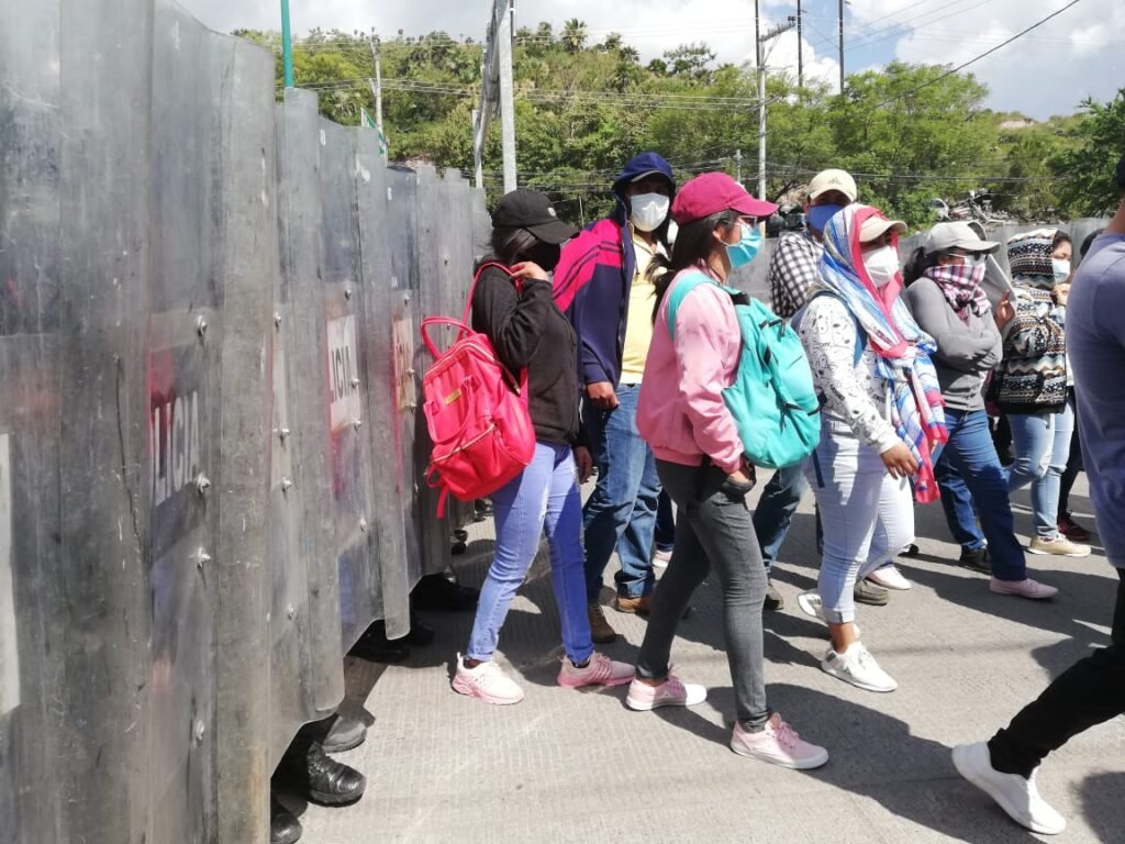 Al lugar arribaron policías estatales con equipo antimotines, mientras funcionarios dialogaban con los egresados de las normales, les pidieron que permitieran la apertura de un carril de circulación vial, lo hicieron y continuaron la discusión sobre sus demandas.