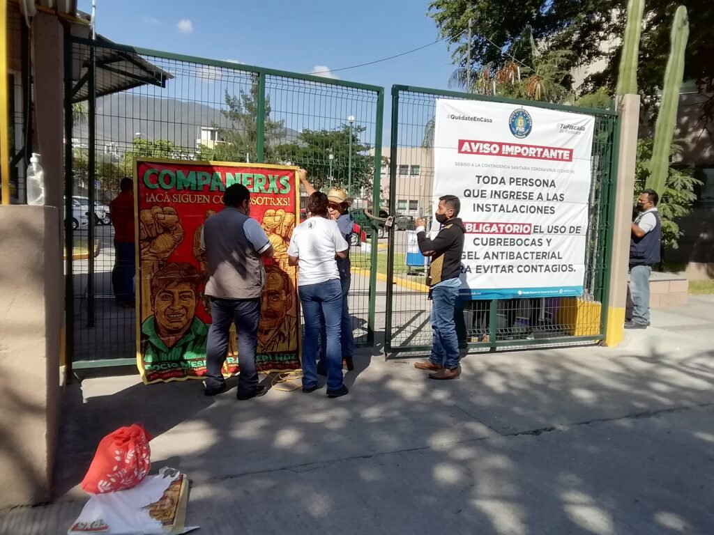 Los contingentes cerraron el acceso peatonal desde el encauzamiento y también el acceso por el estacionamiento, donde colocaron lonas y pancartas para exigir de justicia por ambos asesinatos perpetrados hace varios años.