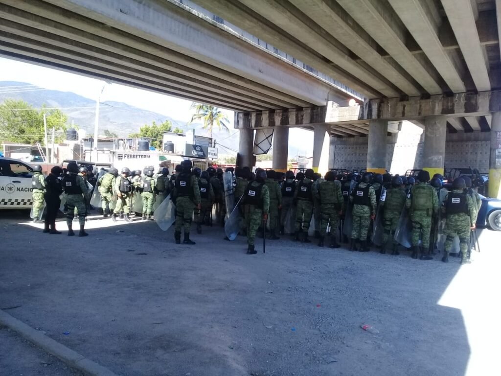 Este viernes, a ese lugar llegaron unos 300 elementos de la Guardia Nacional, de la Policía Ministerial y Policía del Estado para evitar que los manifestantes intentarán volver a instalar ese retén en el acceso a Petaquillas.