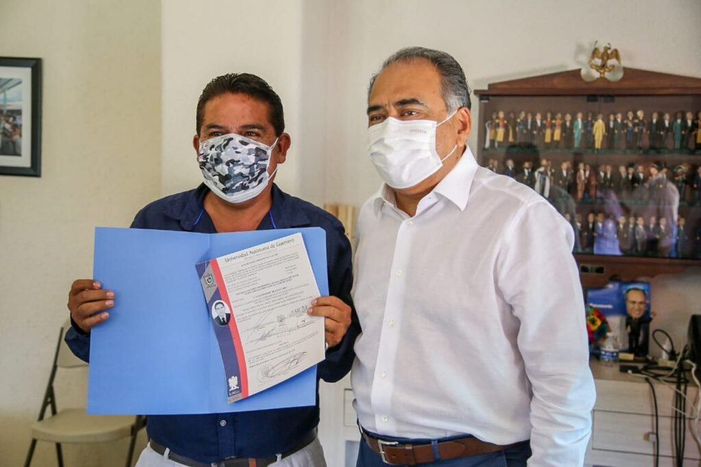 Derivado de un convenio académico con la Universidad Autónoma de Guerrero (UAGro) para la profesionalización de las y los comunicadores, el gobernador Héctor Astudillo Flores entregó actas de titulación a diez periodistas de la entidad.