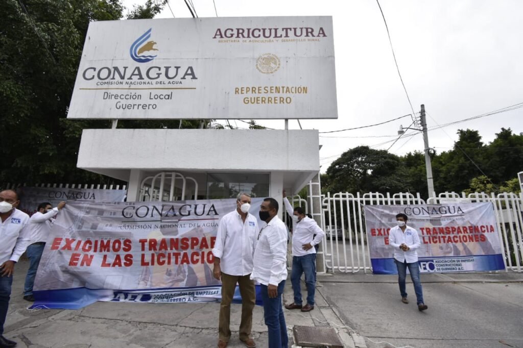 Integrantes de la Asociación de Empresas Constructoras de Guerrero protestaron este martes afuera de las instalaciones de la Comisión Nacional del Agua (Conagua), en Chilpancingo, para denunciar que en la asignación de la obra pública se está beneficiando exclusivamente a empresas foráneas con licitaciones amañadas.