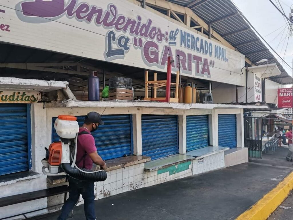Pero además de dar mantenimiento con brigadas de limpieza y fumigación, se realizan constantes recorridos para concientizar a propietarios y locatarios sobre la importancia de acatar las medidas sanitarias contra el Coronavirus.