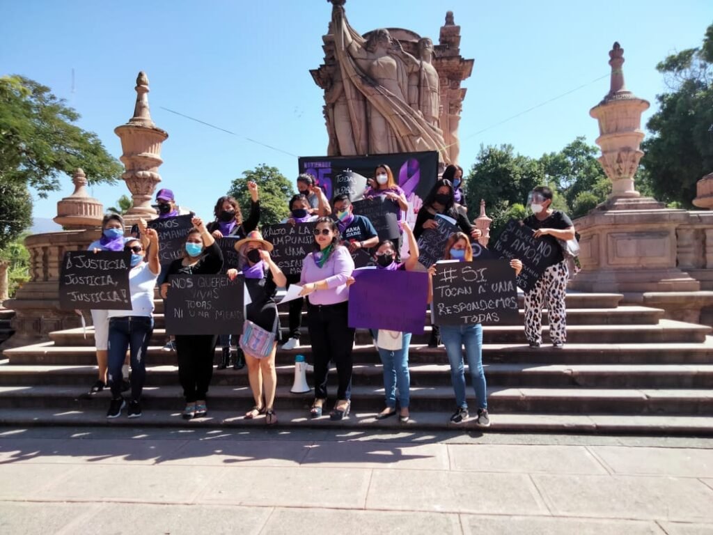 Al llegar al Asta Bandera, las manifestantes bloquearon por algunos minutos la circulación en ese punto de la ciudad.
