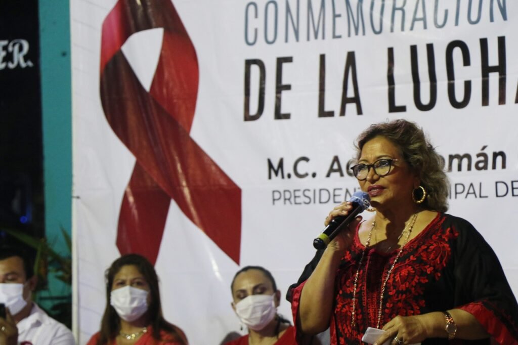 Frente al monumento ubicado en la Costera Miguel Alemán, ícono de esta ciudad y puerto, la alcaldesa indicó que el SIDA es un tema estigmatizado por la sociedad como una enfermedad de vergüenza, que ha causado tanto dolor tanto dolor, pero reiteró que se puede evitar hoy en día con información y uso de preservativos como protección.