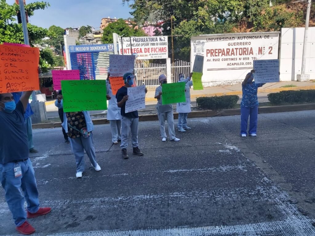 ACAPULCO. — Personal médico del hospital del ISSSTE realizó bloqueos intermitentes para exigir equipo de protección para atender enfermos con COVID-19 y una auditoría por considerar que desconocen en qué se aplican los recursos.