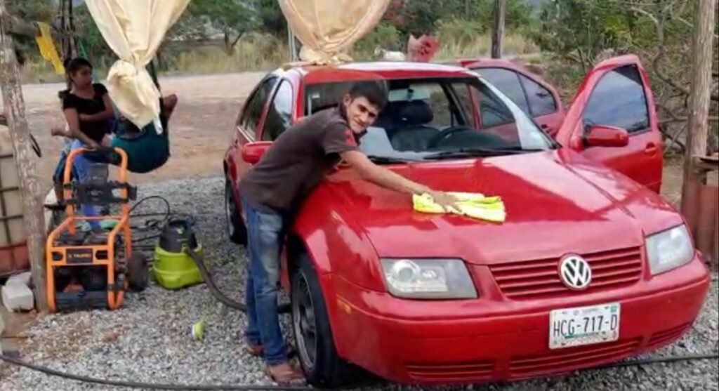Añadió que antes trabajaba en las labores del campo, alquilándose como peón en las cosechas del mango que se producen en la región, una actividad que le dejaba muy buenos dividendos. Sin embargo, ahora con el aumento del desempleo, buscó la manera de poner su propio negocio lavando automóviles para salir adelante y así apoyar sus abuelos, ya ancianos, que solamente reciben su pensión bimestral federal.