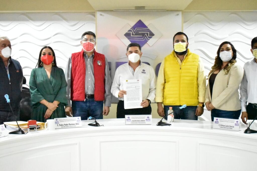 Por el PRI acudió Esteban Albarrán Mendoza, presidente del CDE; Gabriela Bernal Reséndiz, secretaria General y Manuel Saavedra Chávez, representante ante el IEPC.