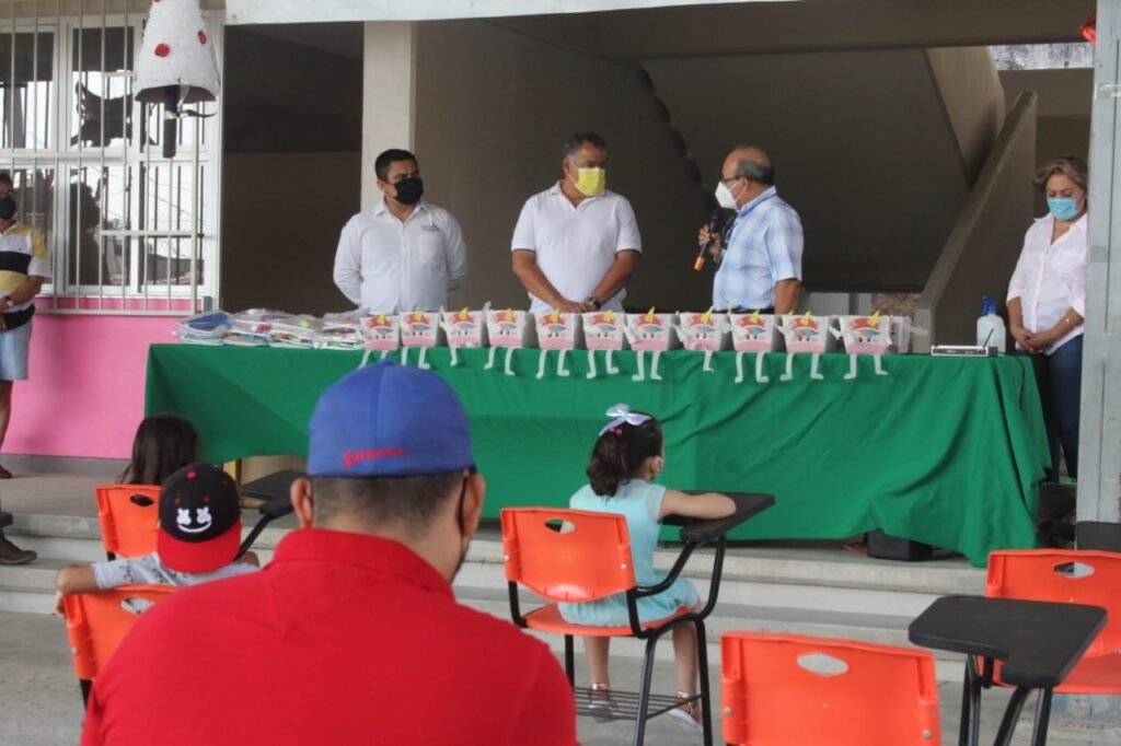 Durante el evento, realizado en los interiores del centro escolar, aplicando las medidas de prevención e higiene de las autoridades de salud, el exedil municipal, felicitó a los estudiantes por seguir sus estudios, a pesar que este ciclo escolar 2020-2021 es a distancia.