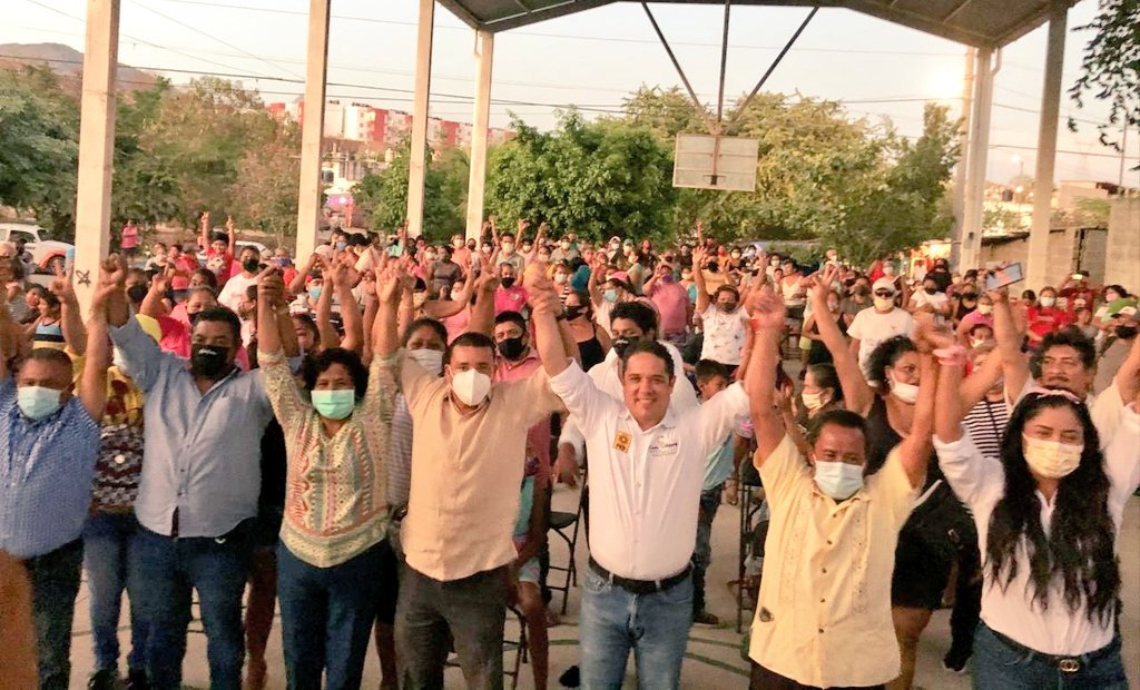 Por la mañana, Evodio Velázquez visitó la cancha de la colonia La Máquina, donde saludó a más de 200 vecinos con quienes habló sobre sus planteamientos de gobierno.