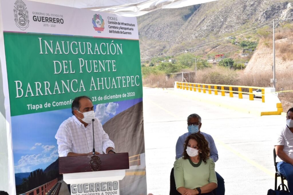 En Tlapa de Comonfort, en el corazón de la Montaña, el ejecutivo guerrerense entregó el puente Barranca de Ahuatepec que comprende 30 metros, donde se invirtieron de manera bipartita, gobierno estatal y municipal 10.5 millones de pesos.