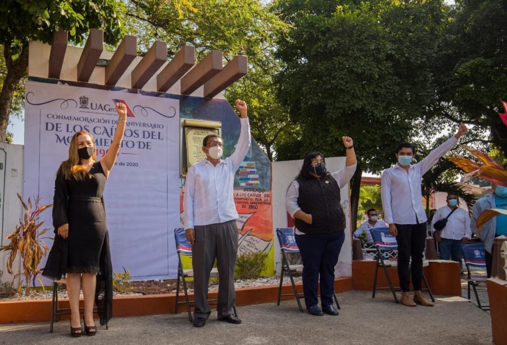 El secretario General de la Universidad Autónoma de Guerrero, José Alfredo Romero Olea, funcionarios y maestros conmemoraron el 60 aniversario de la masacre que cobró la vida de 19 personas en 1960, hecho que terminó la Huelga Estudiantil y logró conquistar la autonomía de la máxima casa de estudios.