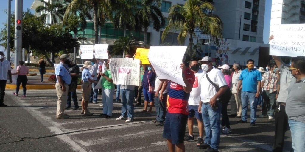 Este miércoles un grupo de más de 300 personas realizaron dos protestas simultáneas docentes del nivel medio superior de planteles pertenecientes a la Dirección General de Educación Tecnológica Industrial (DGETI) bloquearon en Acapulco, la avenida Costera Miguel Alemán y en Chilpancingo, la Autopista del Sol para exigir exigir el pago del bono decembrino.