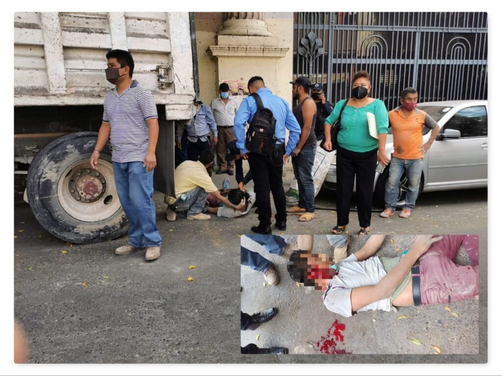 El hecho ocurrió ayer al mediodía, la unidad estaba estacionada sobre la calle Francisco I. Madero, en la entrada del auditorio del Tribunal de Justicia; donde el joven estaba descargando material y perdió el equilibrio, por lo que cayó al piso.