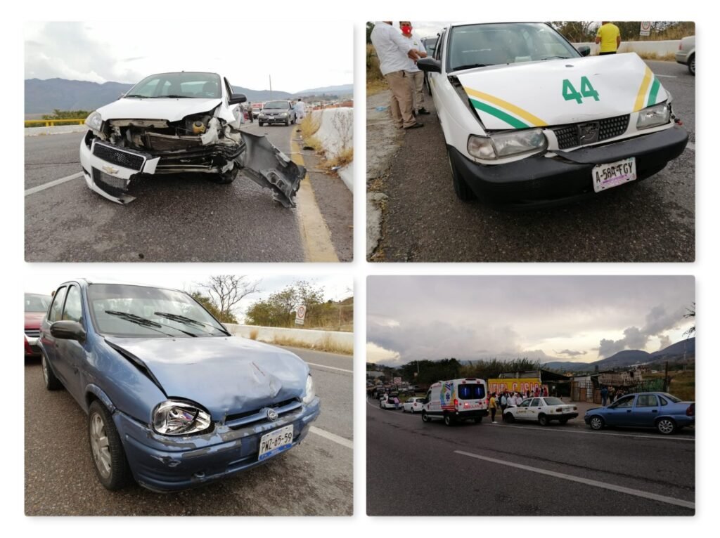 Minutos más tarde, a unos 300 metros de ese punto, con dirección a Petaquillas se registró un choque múltiple entre un automóvil de la marca Volkswagen, tipo Bora, de color vino con placas de Guerrero; un Chevrolet, tipo Chevy, color azul con placas de Morelos; un Nissan, tipo Tsuru, del Servicio Público de El Ocotito, marcado con el número económico 44, y una camioneta tipo Suv Toyota, de color vino con placas de la Ciudad de México.