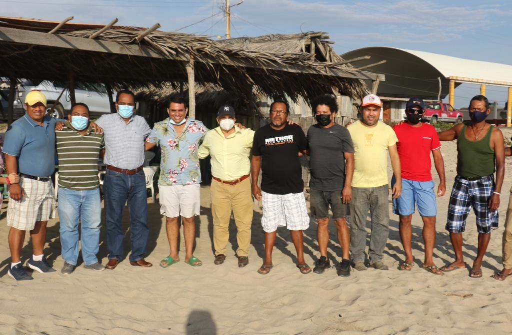 Añorve Baños estuvo acompañado por los ingenieros Dietmar Diego Galeana y Miguel Cuevas, así como líderes e integrantes de cooperativas pesqueras de la zona, a quienes expresó que está a favor de dar continuidad a las acciones que el gobernador del Estado, Héctor Astudillo Flores, ha realizado en este municipio de la Costa Grande.