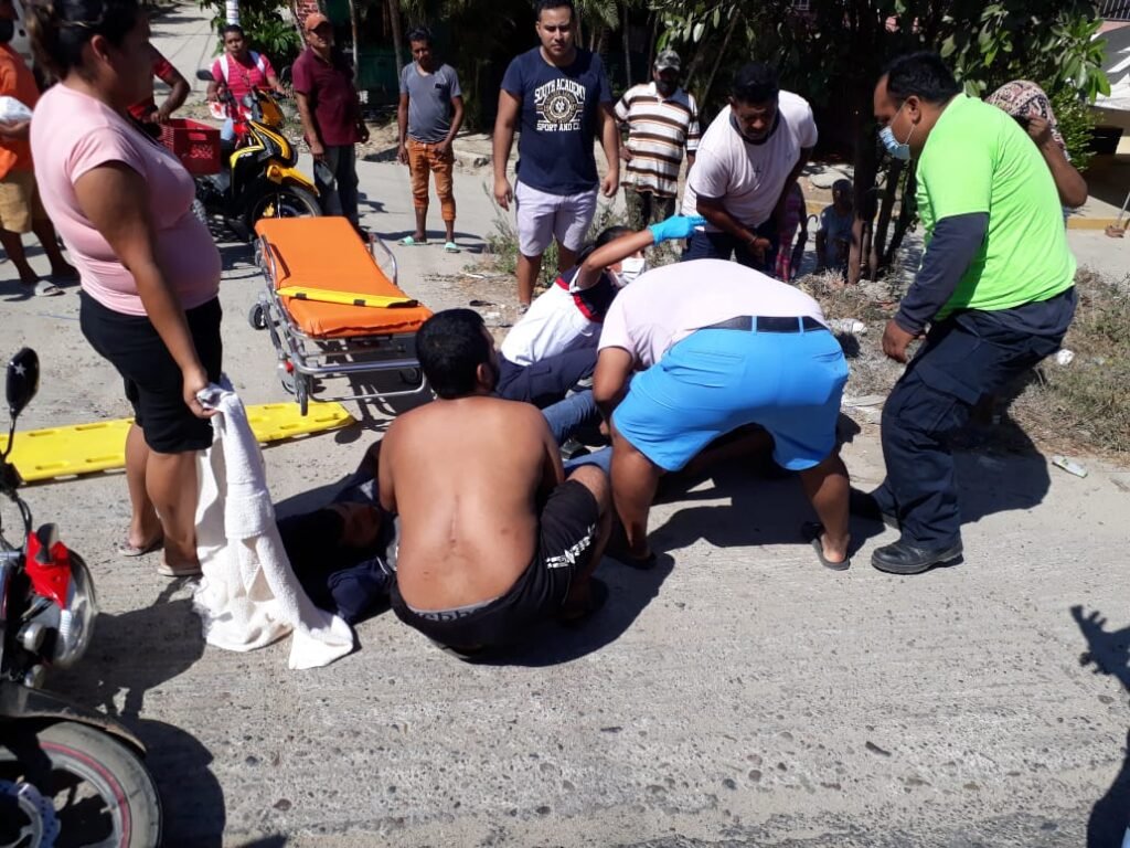 El hecho ocurrió ayer al mediodía, fueron agentes de Protección Civil y paramédicos de la Cruz Roja, quienes se encargaron de brindar los primeros auxilios al joven que resultó con diversas lesiones, por lo que tuvo que ser trasladado al Hospital Básico Comunitario de esta ciudad, para su atención médica.
