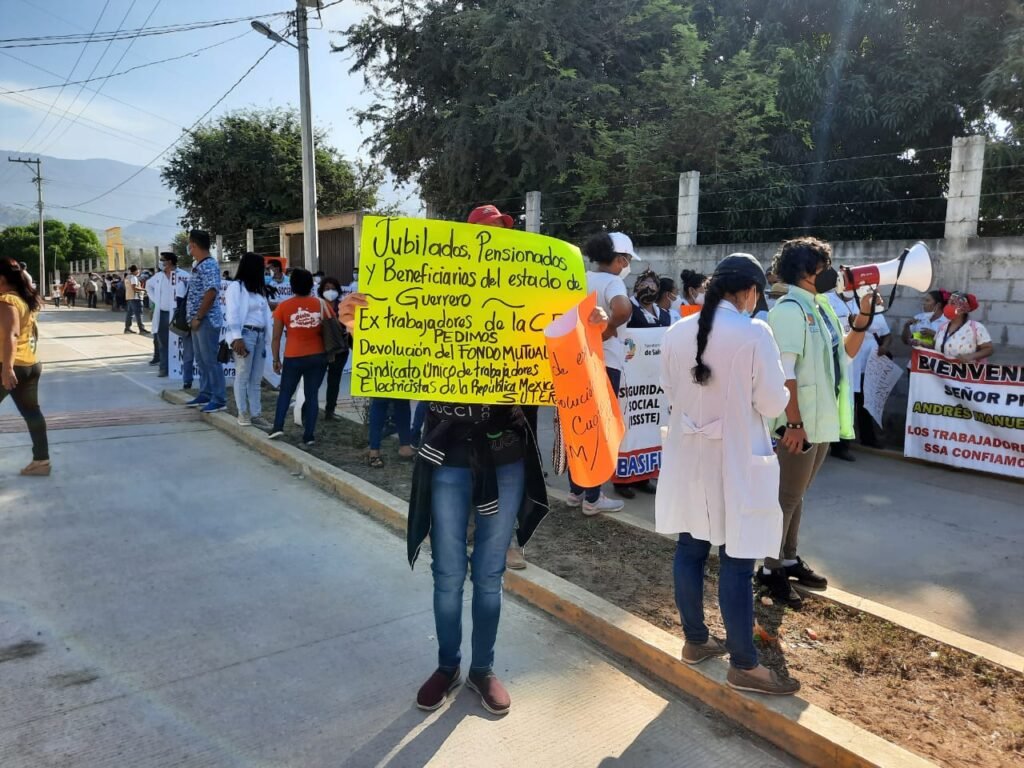 Tierra Colorada.- Al menos una docena de protestas de trabajadores eventuales de Salud, Jubilados, estudiantes universitarios rechazados, directores de escuelas que demandan regularizar sus plazas de trabajo, trabajadores universitarios, policías comunitarios recibieron al presidente Andrés Manuel López Obrador durante su visita a esta cabecera municipal.
