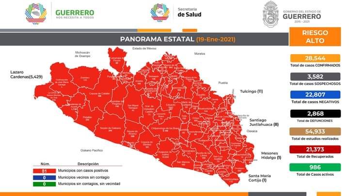 Guerrero reportó este martes 287 nuevos contagios, con lo cual alcanzó un registro de 28 mil 544 casos confirmados y 2 mil 868 defunciones por Covid-19, informó el secretario de Salud estatal, Carlos de la Peña Pintos.