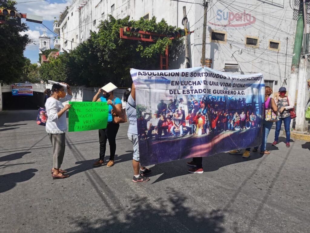 Integrantes de la Asociación de Sordomudos y Discapacitados en Lucha de una Vida Digna del Estado de Guerrero A.C. bloquearon este miércoles la avenida Juan N. Álvarez, esquina con la calle Cristóbal Colón, justo en la entrada del paso a desnivel, en el centro de la capital.
