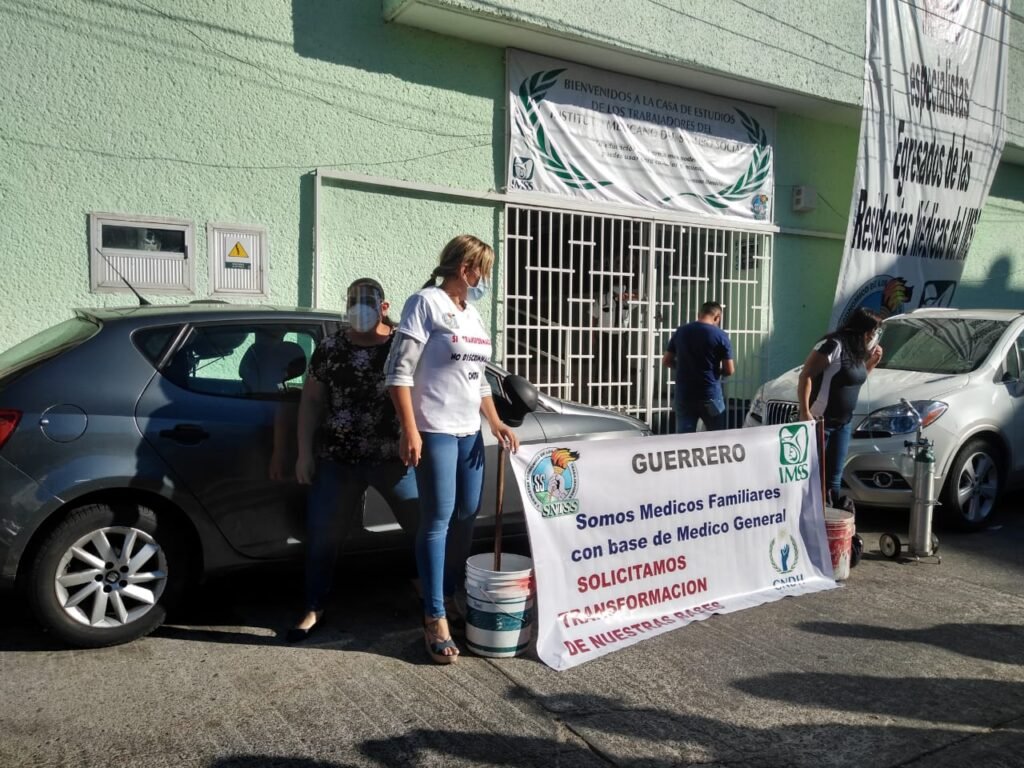 Médicos del Instituto Mexicano del Seguro Social (IMSS) realizaron una protesta para exigir su cambio de base de médicos generales a especialistas.