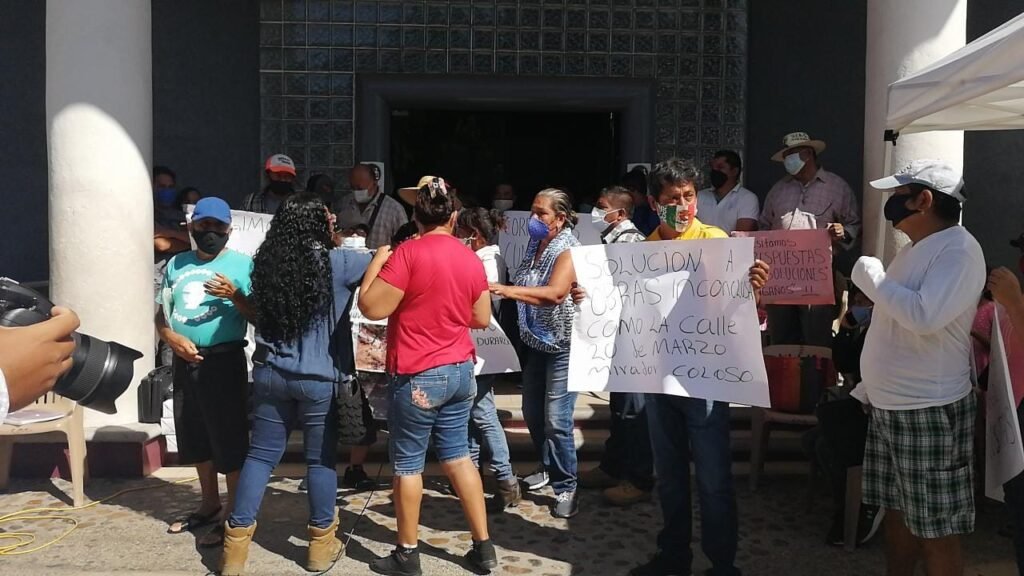 Durante la protesta, exigieron a la Secretaría de Desarrollo Urbano y Obras Públicas del municipio la culminación de los trabajos de construcción de un andador que desde diciembre se encuentran detenidos.