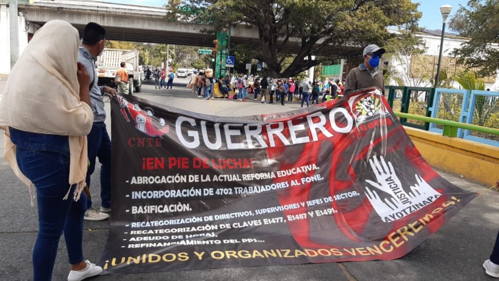 Integrantes de la Coordinadora Estatal de los Trabajadores de la Educación en Guerrero (CETEG) marcharon en Chilpancingo y bloquearon avenidas, para exigir una audiencia con el titular de la Secretaría de Educación Guerrero (SEG), Heriberto Huicochea Vázquez.