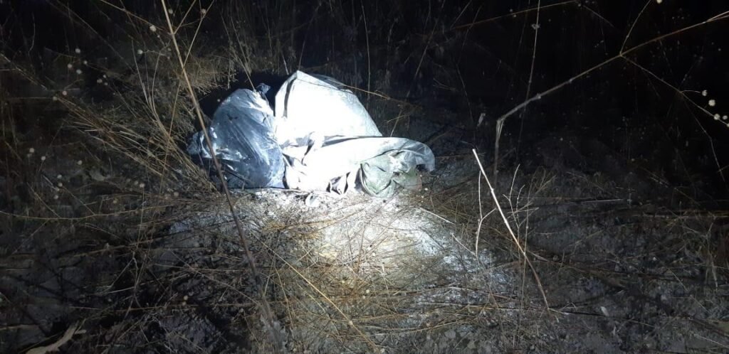 Elementos policiacos y personal de la Guardia Nacional acudieron atendiendo el reporte y efectivamente localizaron dos bolsas de plástico color negro de las cuales despedía olores fétidos.
