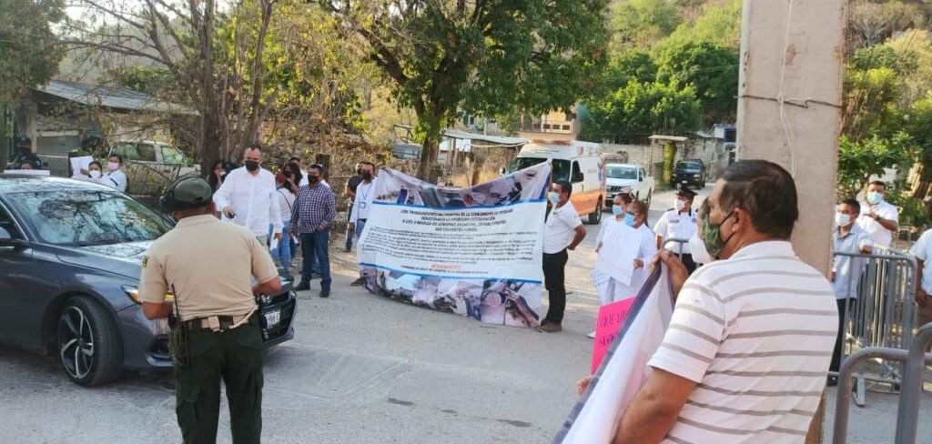 Alrededor de 40 personas del Centro de Salud del municipio de Petatlán, encabezados por los médicos Nicolás Cruz y Ángel Melo Sánchez, se manifestaron para exigir solución a sus demandas laborales y sindicales.