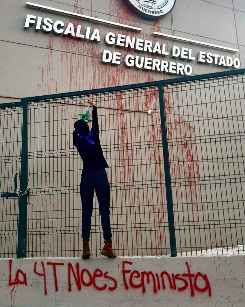 Integrantes de la Colectiva Nacional Feminista (Conafem) realizaron una protesta afuera de las instalaciones de la Fiscalía General del Estado (FGE), donde lanzaron pintura al interior, realizaron pintas en la barda para manifestar su repudio a la candidatura a la gubernatura de Félix Salgado Macedonio y en exigencia de justicia en la carpeta de Investigación que se presentó desde el 2016.
