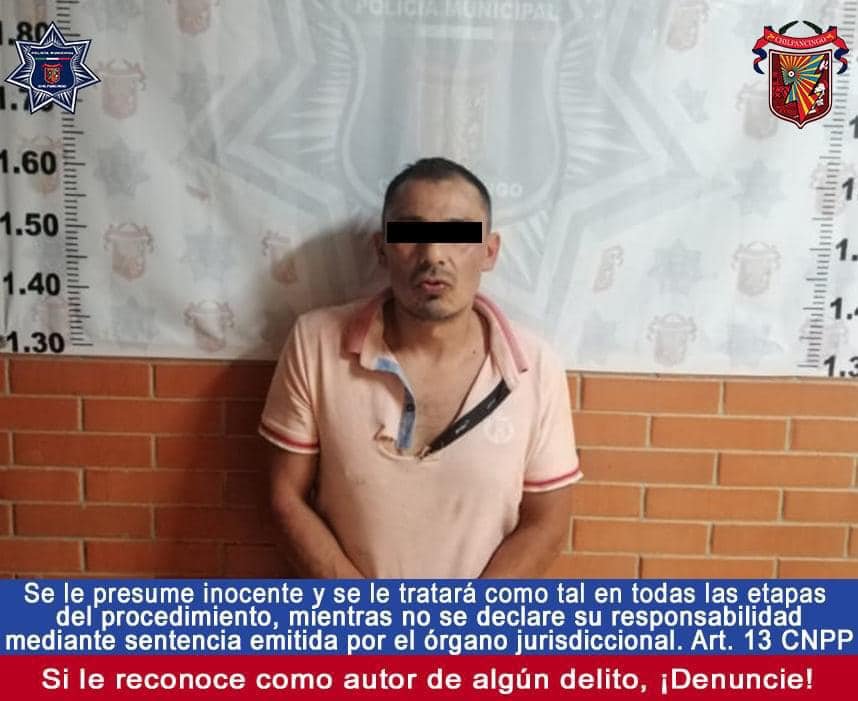 Se trató de Citlalic N., de 37 años de edad, quien fue detenido por las autoridades, quienes le leyeron sus derechos y lo trasladaron al área Jurídica de la Secretaría de Seguridad Pública municipal para realizar los trámites correspondientes. Posteriormente será puesto a disposición del Ministerio Público especializado en violencia familiar y delitos sexuales.