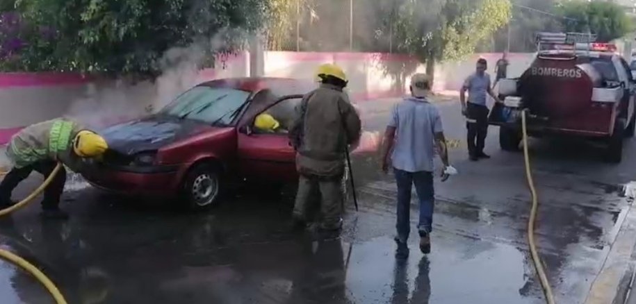 De inmediato, bomberos del municipio acudieron al lugar y sofocaron el incendio del auto color rojo.
