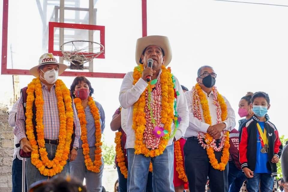 En su segundo día de actividades proselitistas en municipios de la zona Centro, el candidato de Morena estuvo en Zumpango, cabecera municipal de Eduardo Neri, donde anunció que recorrerá las 28 cabeceras distritales locales de nuestra entidad, para “preguntarles cuál es la obra social que necesitan, vamos a estirar el presupuesto para que no quede partes del cuerpo descubiertas, que se cubra todo el cuerpo para que haya justicia social”.