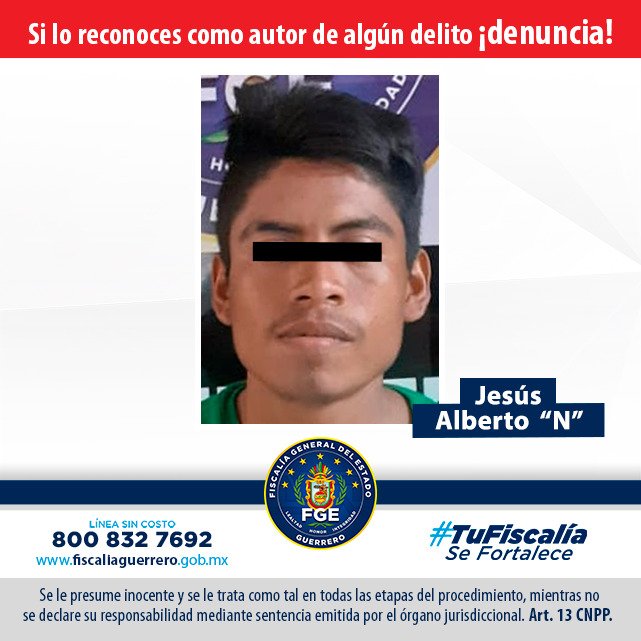 Elementos de la Fiscalía General del Estado, a través de la Policía Investigadora Ministerial, dio cumplimiento a la orden de aprehensión en contra de Jesús Alberto “N”, detenido como probable responsable del delito de homicidio calificado, quedando a disposición del juez correspondiente del Distrito de Tabares, en Acapulco.