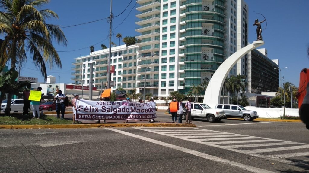 ACAPULCO. -Simpatizantes de Morena protestaron este domingo en la Costera Miguel Alemán y en la caseta de La Venta de la Autopista del Sol para expresar su inconformidad por la resolución del Instituto Nacional Electoral (INE) de retirarle la candidatura a Félix Salgado Macedonio.