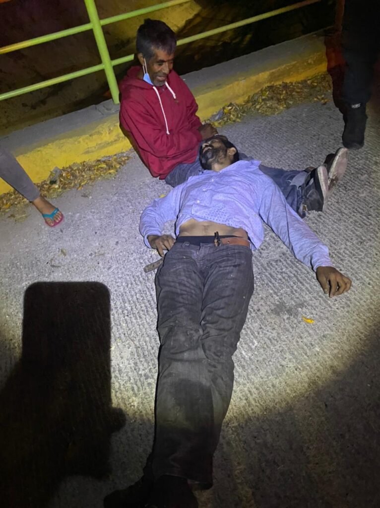 Al lugar arribaron paramédicos de Cruz Roja, quienes al auscultarlo indicaron que ya no presentaba signos vitales, procediendo a cubrir el cuerpo con una sábana color azul.