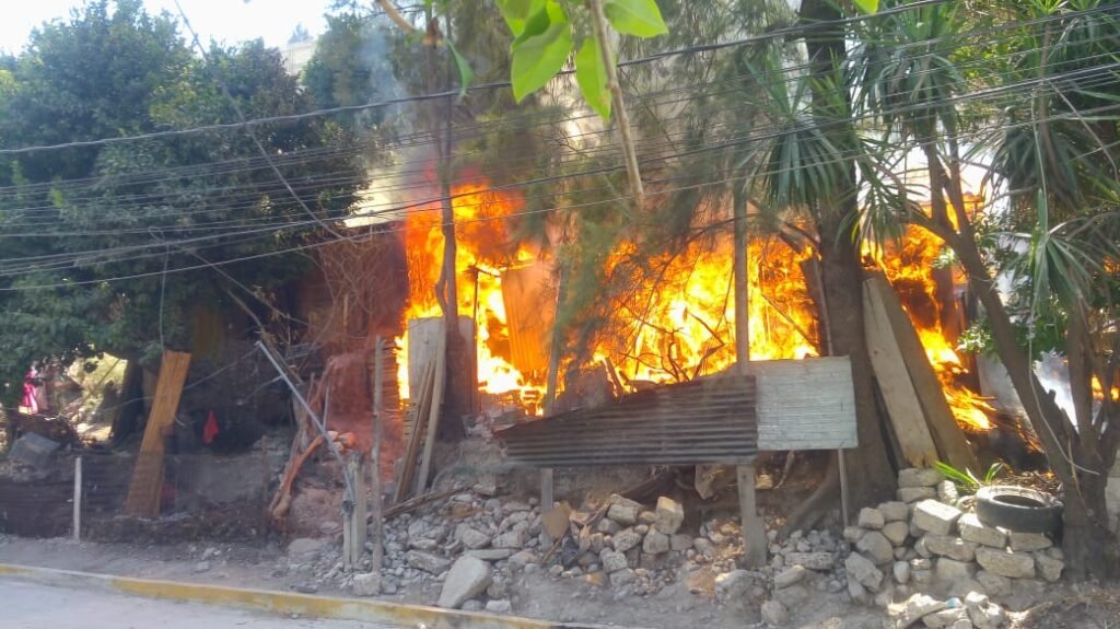 Hasta el cierre de esta edición las labores no habían concluido quedando madera y llantas destruidas.